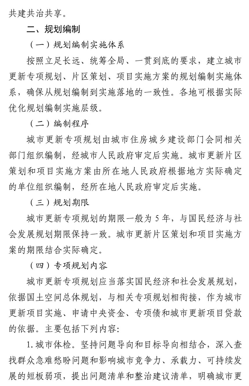 為深入貫徹中央城市工作會議精神,落實《中共中央辦公廳、國務院辦公廳關于持續(xù)推進城市更新行動的意見》,指導各地制定實施城市更新專項規(guī)劃,建立完善“專項規(guī)劃—片區(qū)策劃—項目實施方案”的規(guī)劃實施體系,住房城鄉(xiāng)建設部組織編制了《城市更新規(guī)劃編制導則》,要求結合實際做好城市更新規(guī)劃編制實施工作。