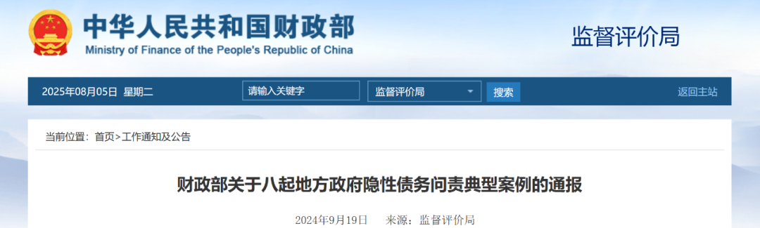 通報(bào)8起地方政府隱性債務(wù)問(wèn)責(zé)案例