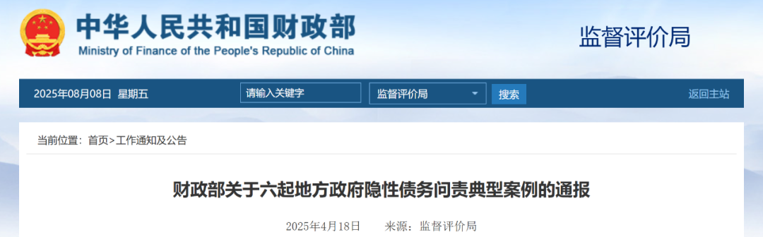 通報(bào)6起地方政府隱性債務(wù)問(wèn)責(zé)案例