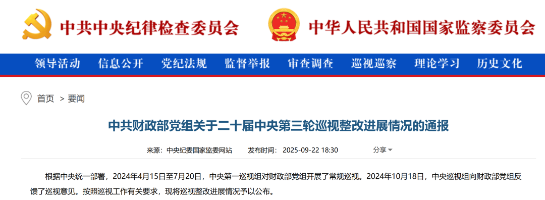 財政部巡視整改通報:聚焦招投標整治等各類整改問題,扎實開展“十五五”規(guī)劃前期謀劃
