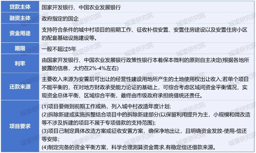 根據(jù)住建部、財(cái)政部、中國(guó)人民銀行、金融監(jiān)管總局印發(fā)的《關(guān)于通過(guò)專項(xiàng)借款支持城中村改造工作方案》,城中村改造專項(xiàng)借款(表2)以城市為單位,由市人民政府承擔(dān)統(tǒng)借統(tǒng)還責(zé)任,確定合格的地方國(guó)企(原則為市屬全資國(guó)企)作為借款主體,向國(guó)家開發(fā)銀行、中國(guó)農(nóng)業(yè)發(fā)展銀行兩家政策銀行申請(qǐng)的資金。