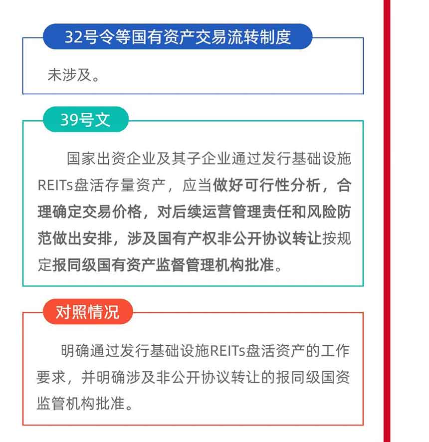 三是明確通過發行基礎設施REITs盤活存量資產的工作要求,并明確涉及非公開協議轉讓的報同級國資監管機構批準;