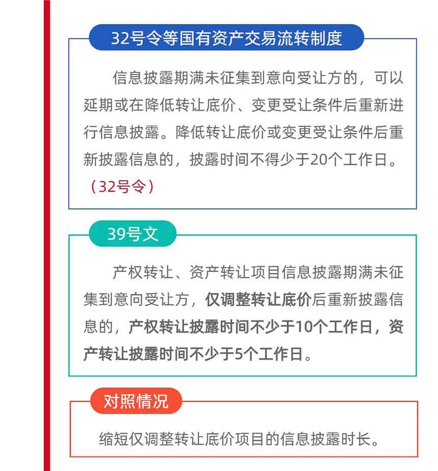 三是對于僅調整轉讓底價的項目,縮短重新信息披露時長;四是強調交易流轉環節對無形資產的管理要求,并明確相關要求應在信息披露和交易合同中予以體現。