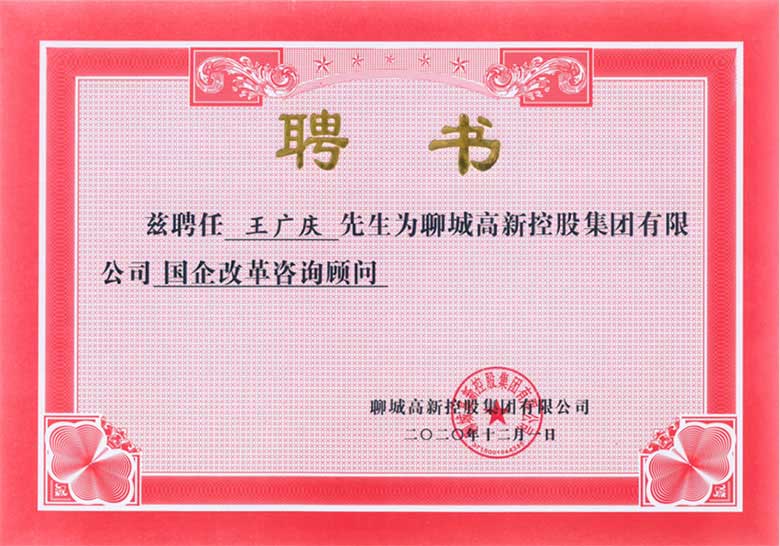 高新控股集團特聘請城望集團總裁王廣慶為聊城高新控股集團有限公司國企改革咨詢顧問